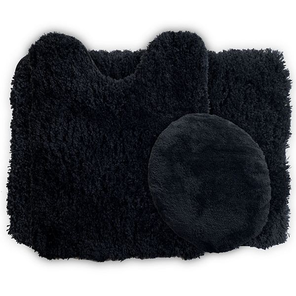 3 pc bathroom rug set bath mats angela solid black color anti slip soft mats new.