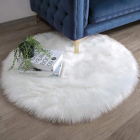 Lochas deluxe super soft fluffy shaggy home decor faux sheepskin rug for bedroom floor sofa chair chair cover seat pad couch pad area carpet 2ft x 3ft ivory white.