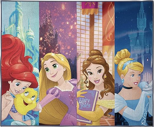 Disney princess dreamers kids room rug large area rug measures 4 x 5 feet features ariel belle cinderella rapunzel offical disney product 4 9 out of 5 stars 27 49 99 49.