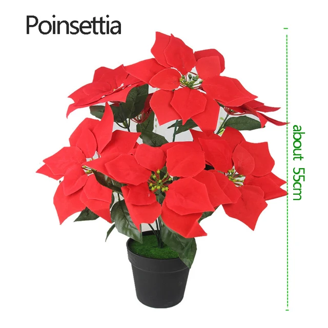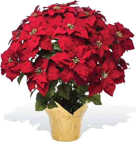 Extra large red silk poinsettia arrangement adds a touch of radiant color and charm to your holiday settings.