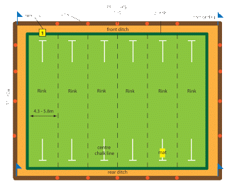 The first to play places the mat on the centre line at least 2 metres from the ditch and up to the hog line if desired.