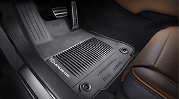 The lexus all weather floor mats feature a distinctive lexus logo and a ribbed channel design that helps contain moisture grease dirt sand and other debris.